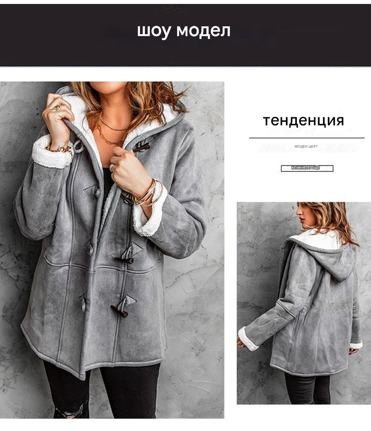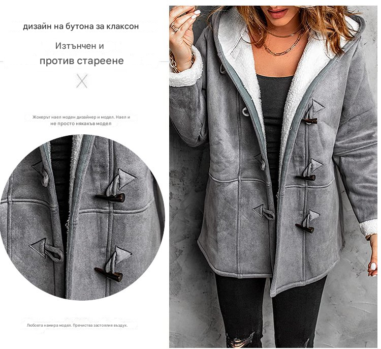 🥼🔥【Ограничена оферта 50%】💖[S-5XL] Ново модно топло дамско яке с качулка и велурена и вълнена подплата за 2025 г.