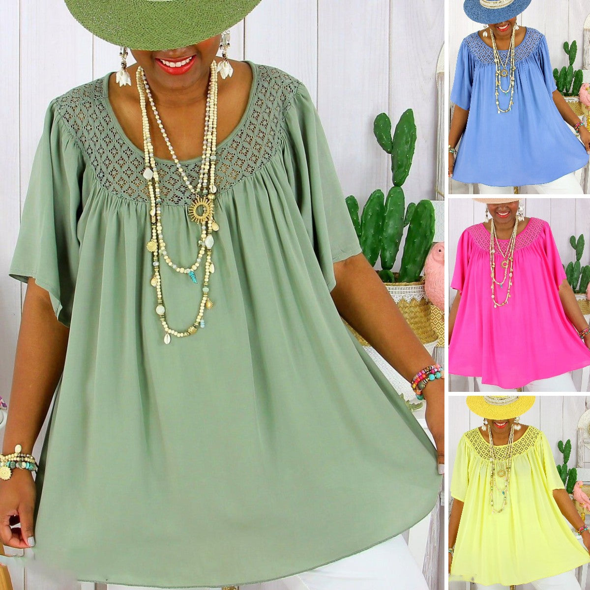 💖【XL-8XL】DĂĄmskĂ© letnĂ­ novĂ© jednobarevnĂ© volnĂ© krajkovĂ© oblečenĂ­ pro větĆĄĂ­ velikosti