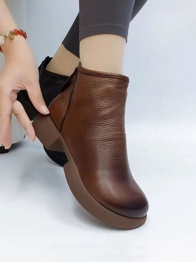 💟【35-40】Podzimní/zimní dámské luxusní boty 2025: Kožený svršek, měkká podešev na platformě, pohodlné a praktické zapínání na zip.