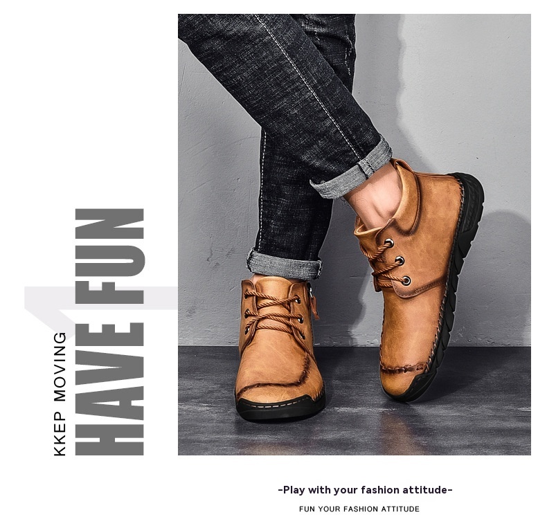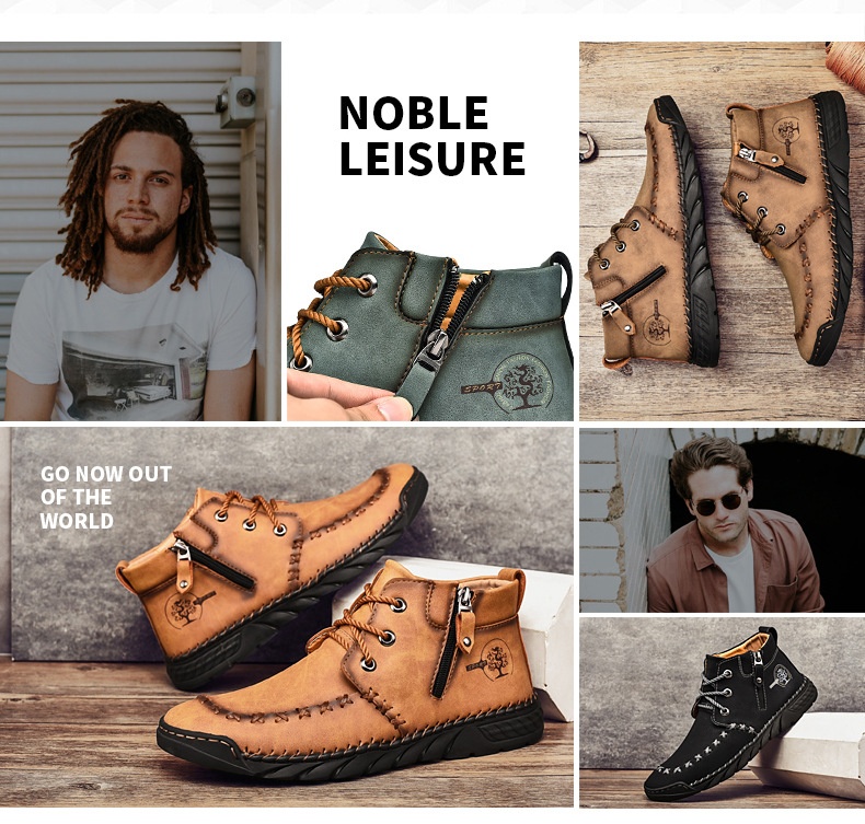 🔥😀【38-46】Nové pánské martinské boty ve velkých velikostech, kožené boty s vysokým pasem na zip, ručně šité