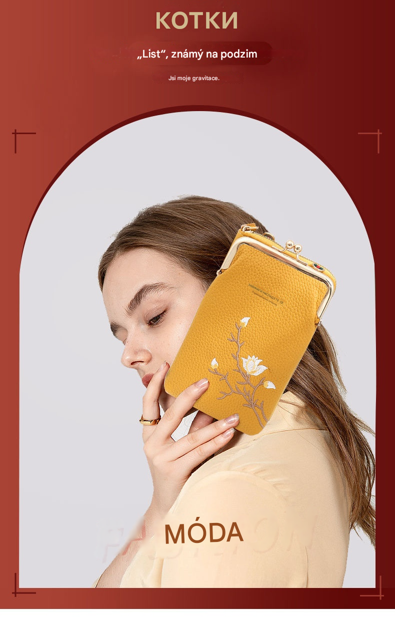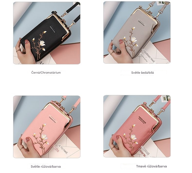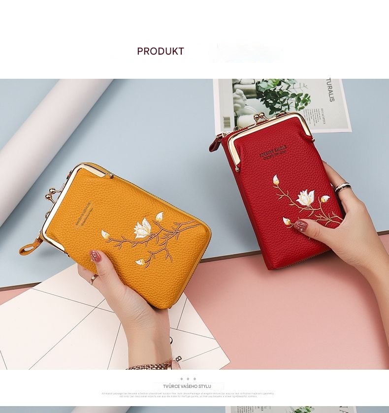 🔥【50% sleva】👜Vyšívaná peněženka, stylový design, taška na telefon s dlouhým ramenním popruhem, model 2025