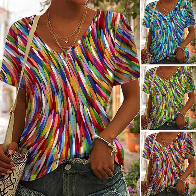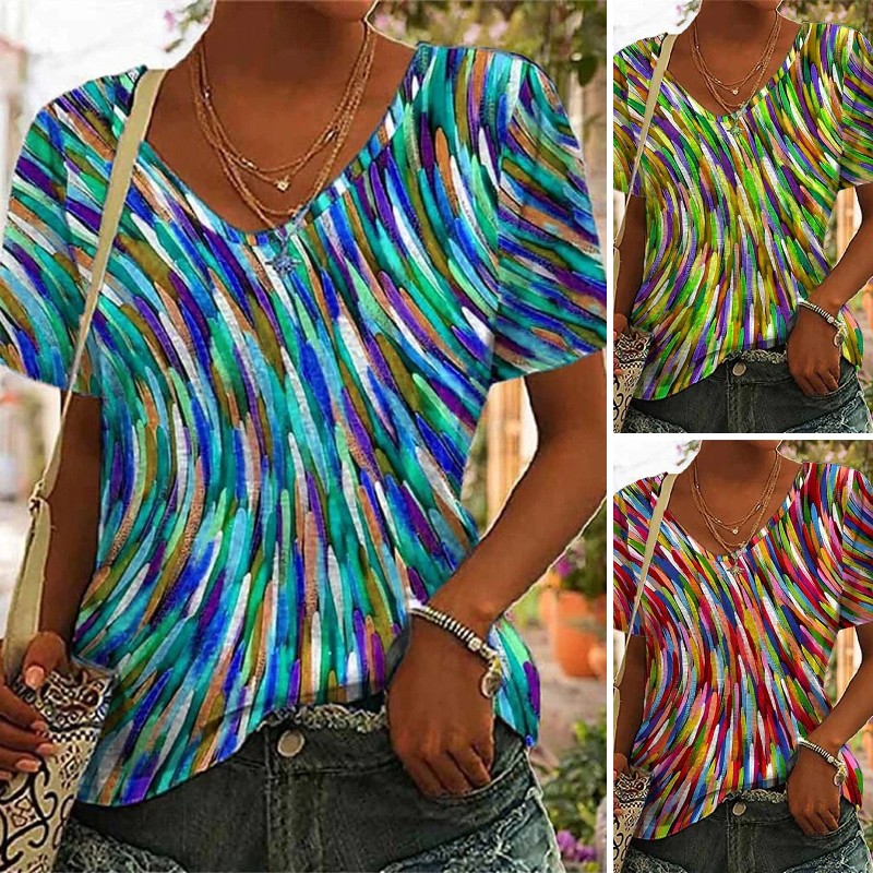 🔥Časově omezená akce🔥[S-5XL] 2025 nové letní dámské tričko s krátkým rukávem a výstřihem do V s potiskem jedinečného stylu