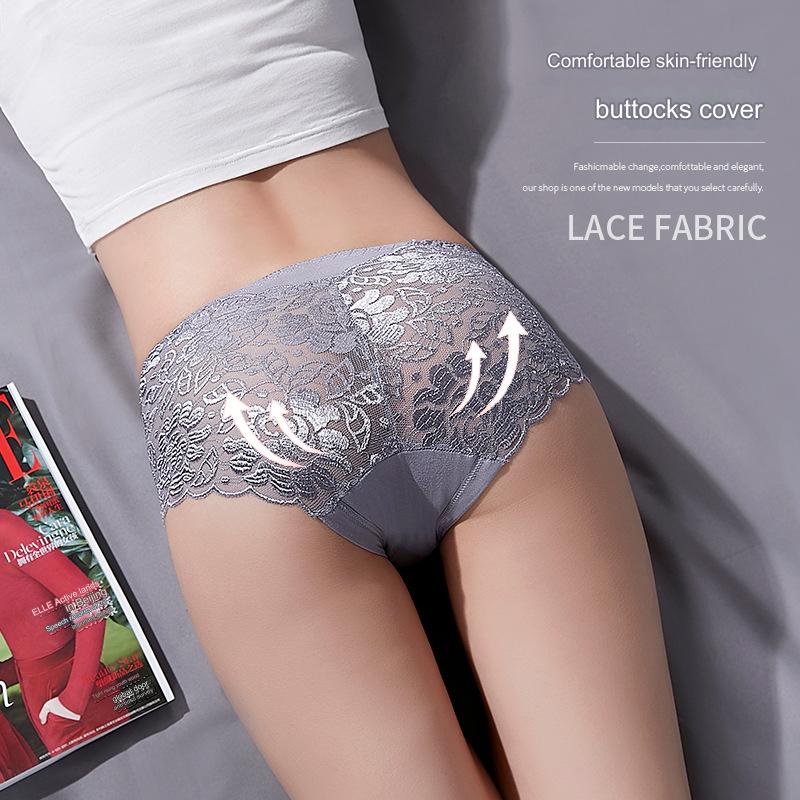 【10 barev】【M-3XL】 Dámské sexy krajkové zvedací kalhotky se středním pasem