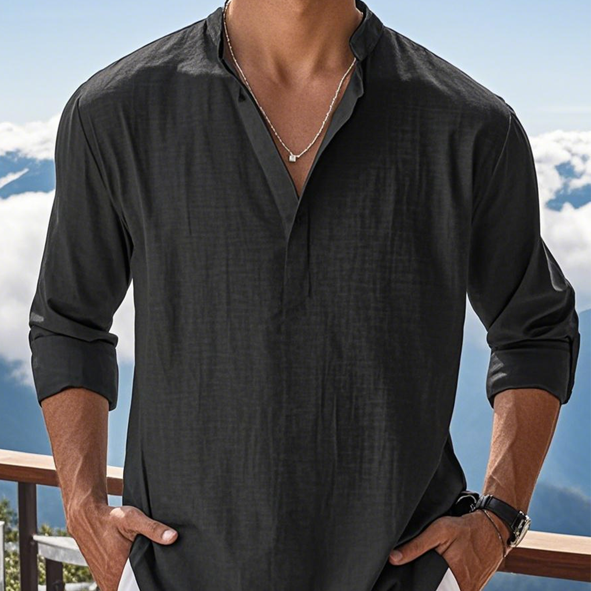 đ€©âšăS-5XLă2025 FĂ©rfi lezser pamut vĂĄszon ing, egyszĂnƱ, hosszĂș ujjĂș, magas gallĂ©rĂș ing, laza