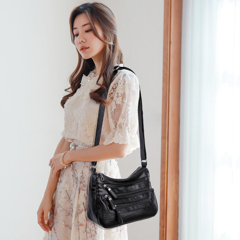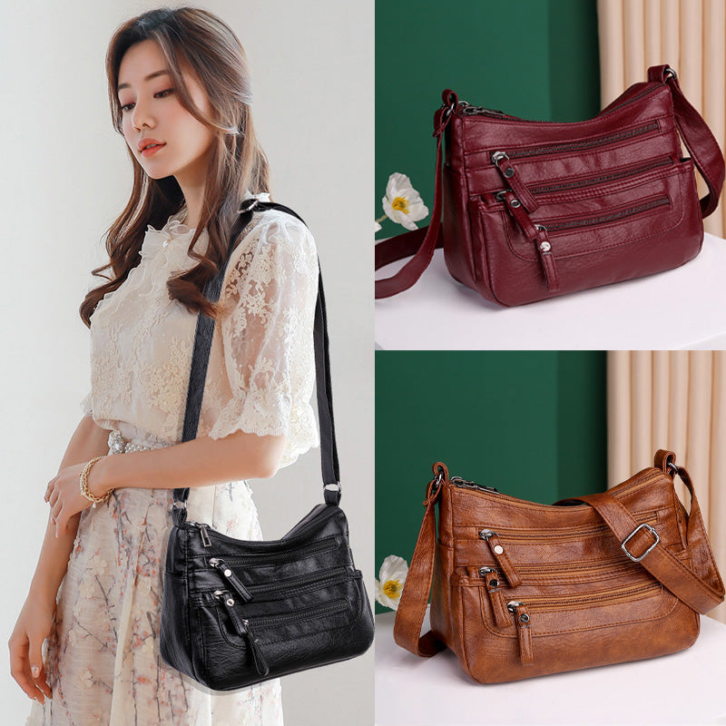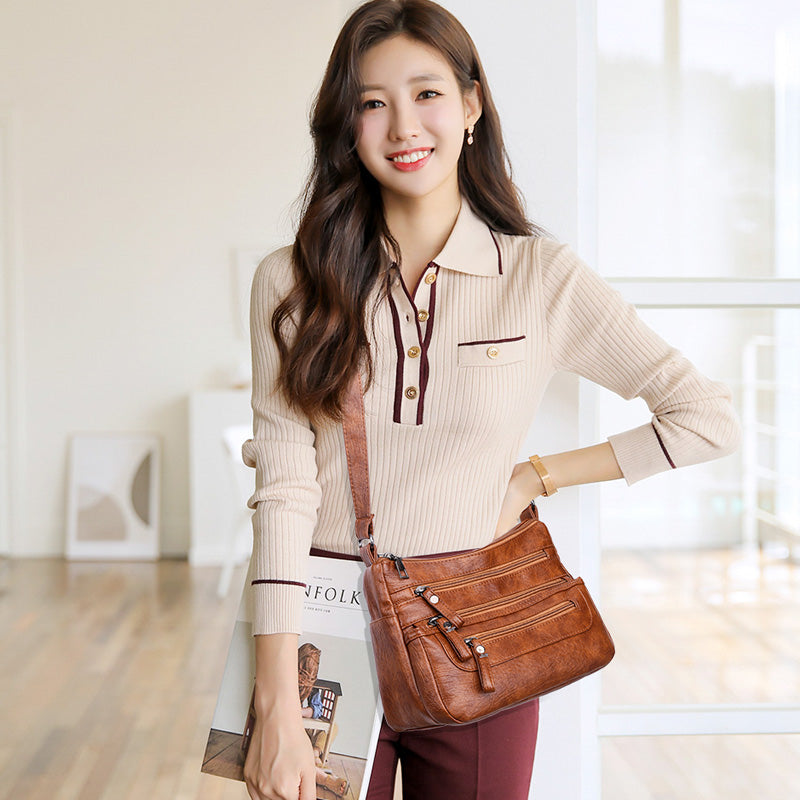 2025-ös új divatos, nagy kapacitású válltáska, többrétegű női hátizsák, könnyű és egyszerű, puha bőrből készült messenger táska