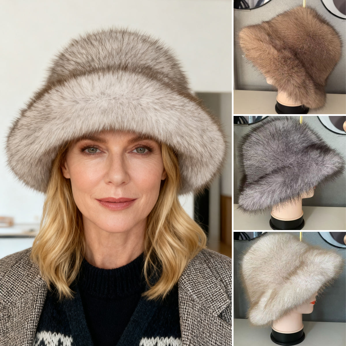 【Vásároljon 1-et, kapjon 1-et ingyen】 Női őszi-téli meleg sapka nagy karimájú és rókaprémes szegéllyel.