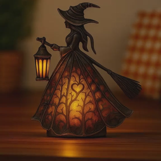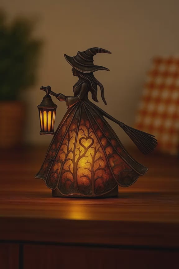 🧙♀️ Lampa na Halloween z czarownicą, straszny gotycka latarnia, wyjątkowa dekoracyjna figurka na lampkę stołową, lampka nocna z nogami, odpowiednia do domu, na werandę, do biura, na imprezę, może służyć jako dekoracja na Halloween i prezent.