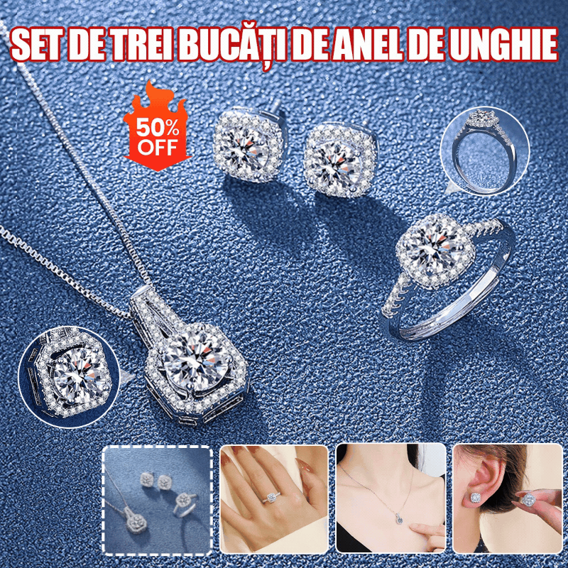 ✨(Ogrlica + Uhani + Prstan)🔥 Komplet treh kosov nakita z geometrijskim cirkonom