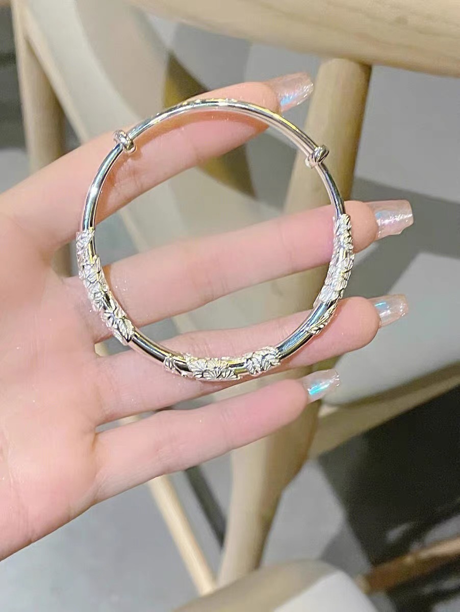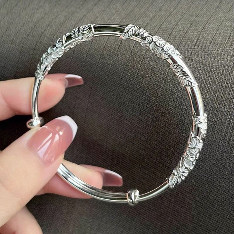 ❣️【Kupite eno, dobite eno brezplačno】Nastavljiva zapestnica iz srebra S925, 💞Rože do konca, zapestnica iz masivnega srebra s potiskom