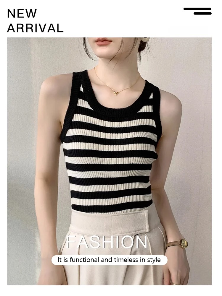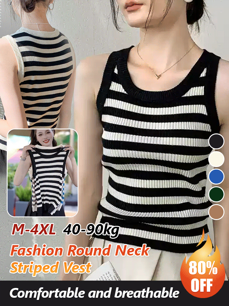 🎁【40–90 kg】【50 % popust】Moden črtast telovnik z okroglim izrezom, najboljša izbira za pomlad in jesen