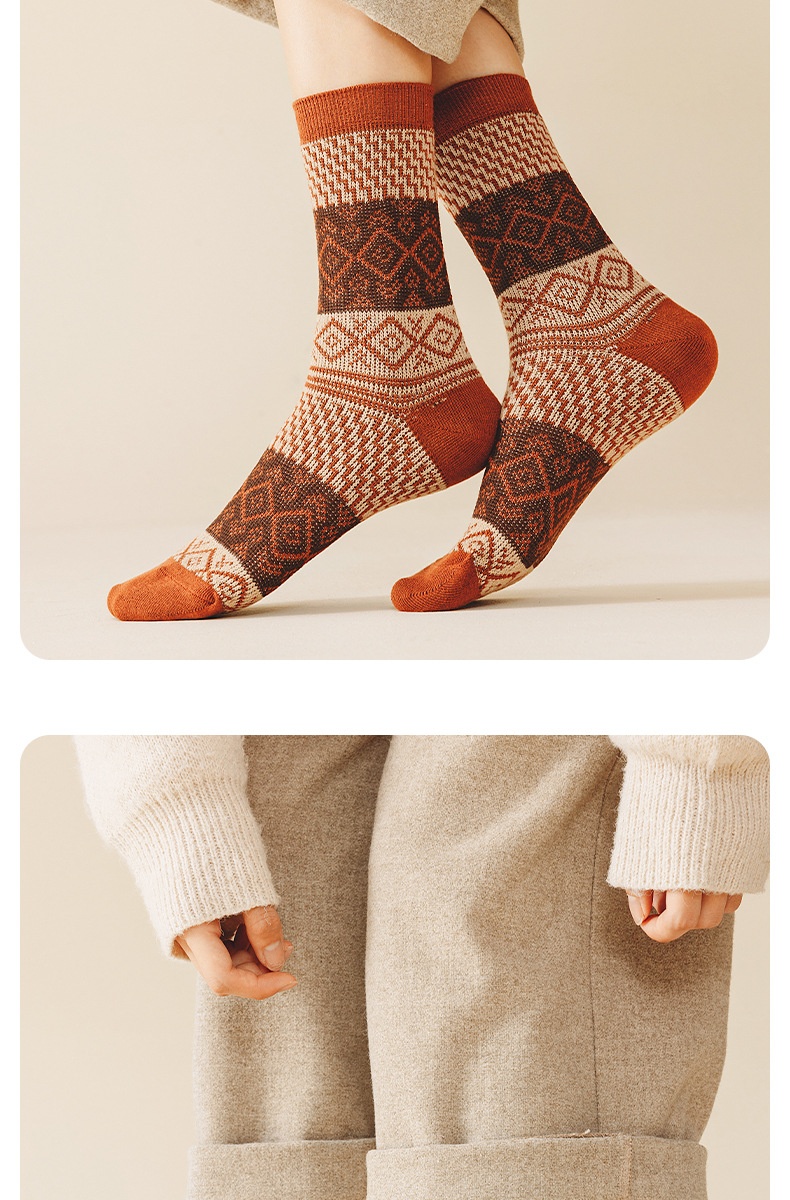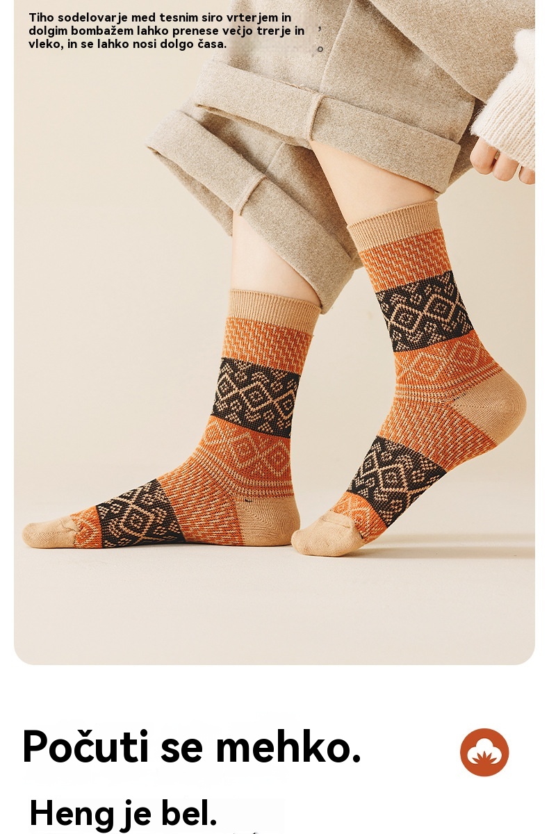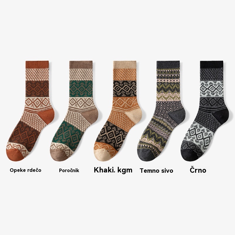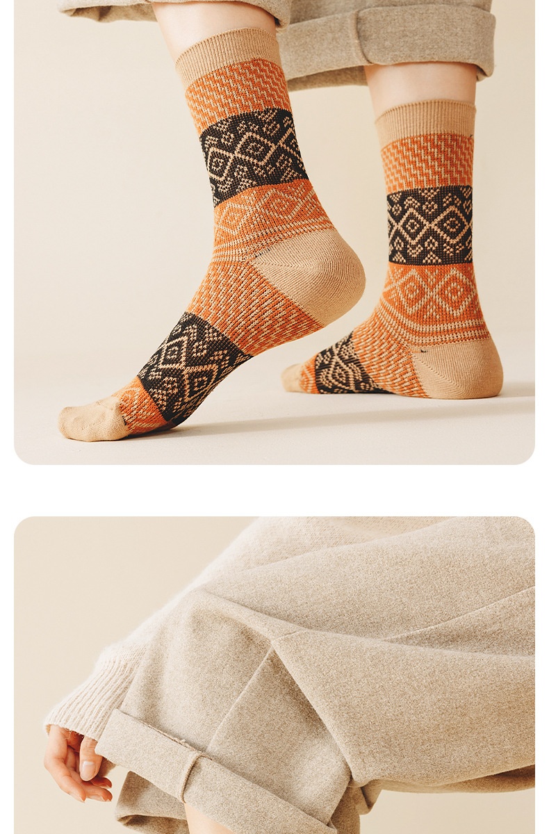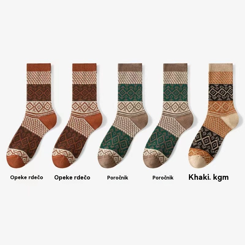 🏆【50 % popust】🧦Retro barvno ujemajoče se priložnostne nogavice v etničnem slogu, srednje cevaste nogavice, jesenske in zimske tople bombažne nogavice