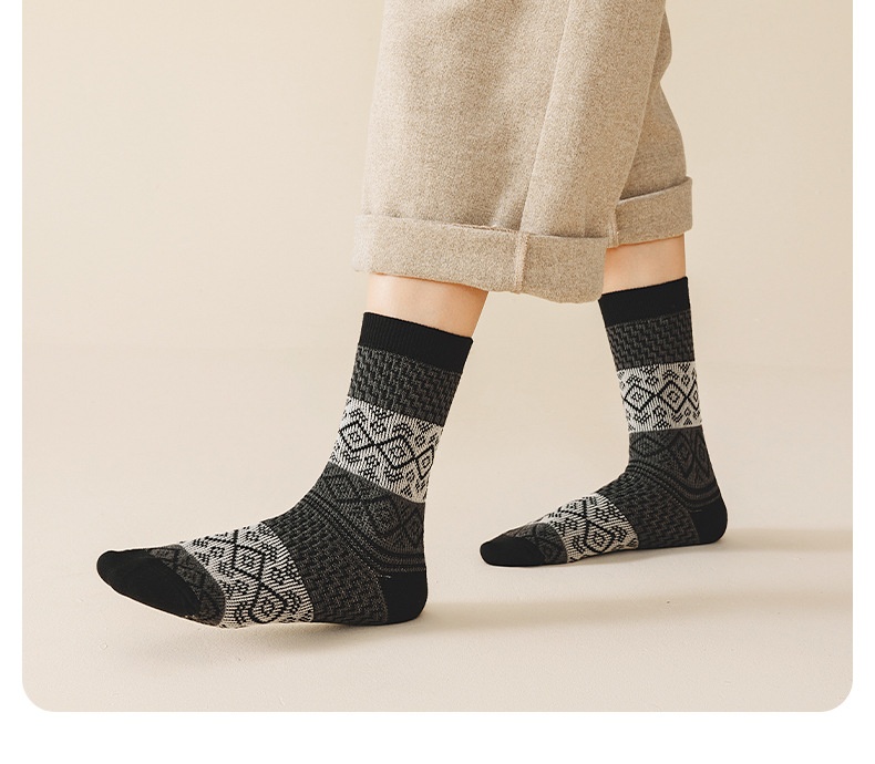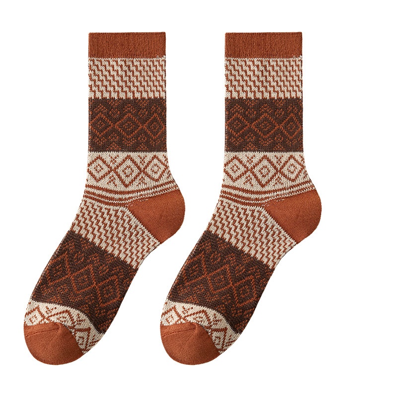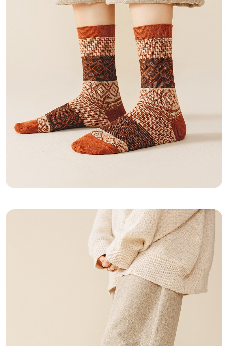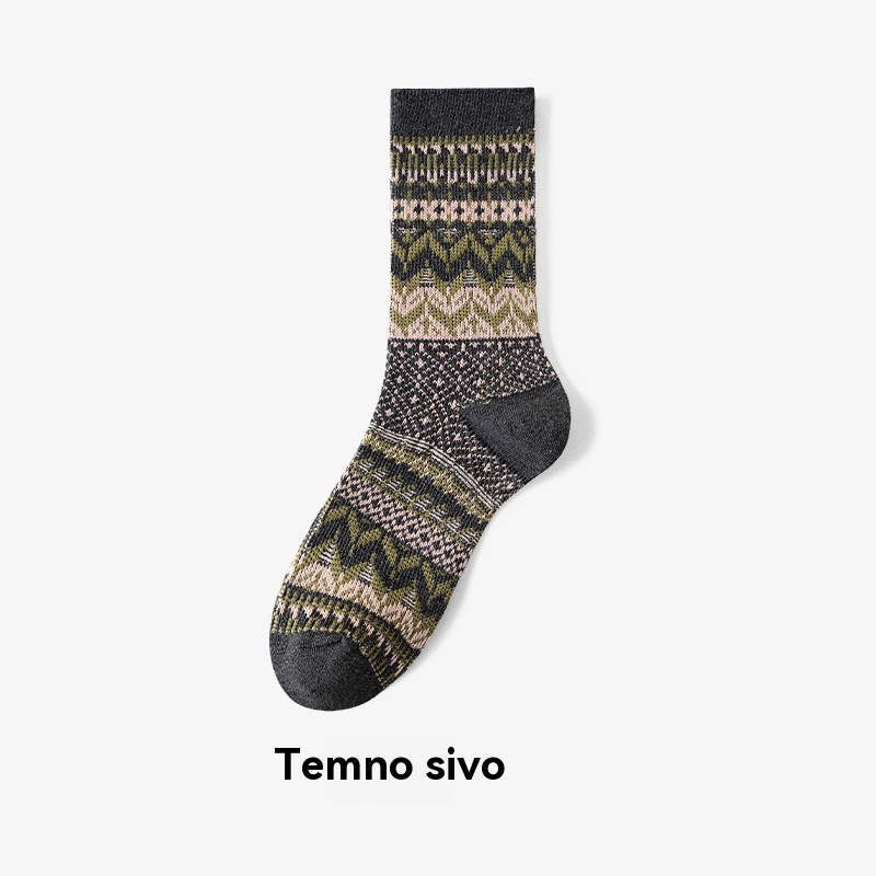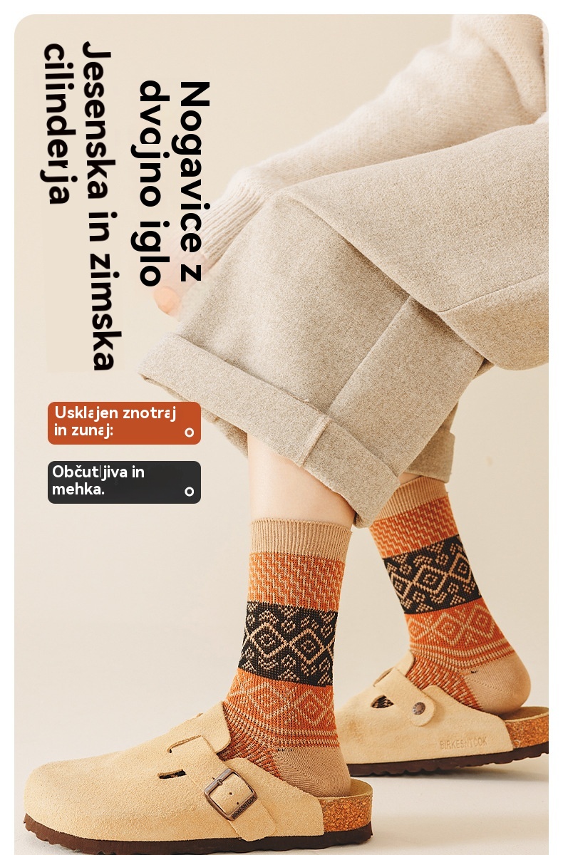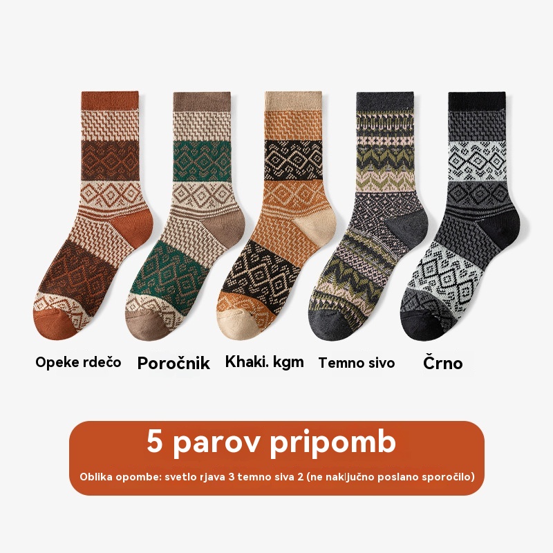 🏆【50 % popust】🧦Retro barvno ujemajoče se priložnostne nogavice v etničnem slogu, srednje cevaste nogavice, jesenske in zimske tople bombažne nogavice