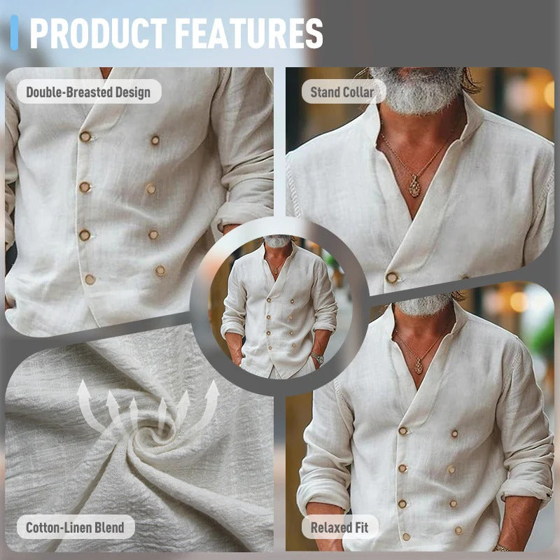 👔🌿Moška bombažno-lanena srajca z dvojnimi gumbi