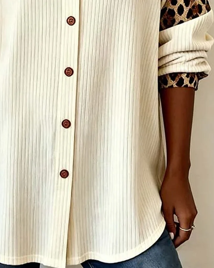 💖【50 % popust】【S-3XL】Nova jesensko/zimska elegantna srajca z leopardjim vzorcem in ovratnikom - mehka in udobna, z gumbi