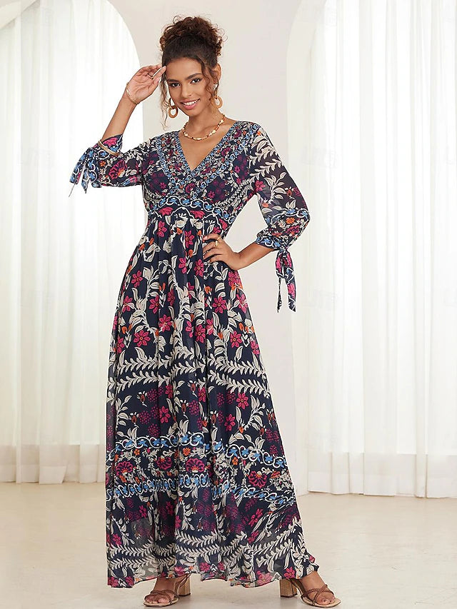 šćS-5XLćšPoletna nova ženska obleka s cvetliÄnimi naborki in V-izrezom, festivalska obleka v boemskem slogu 2025