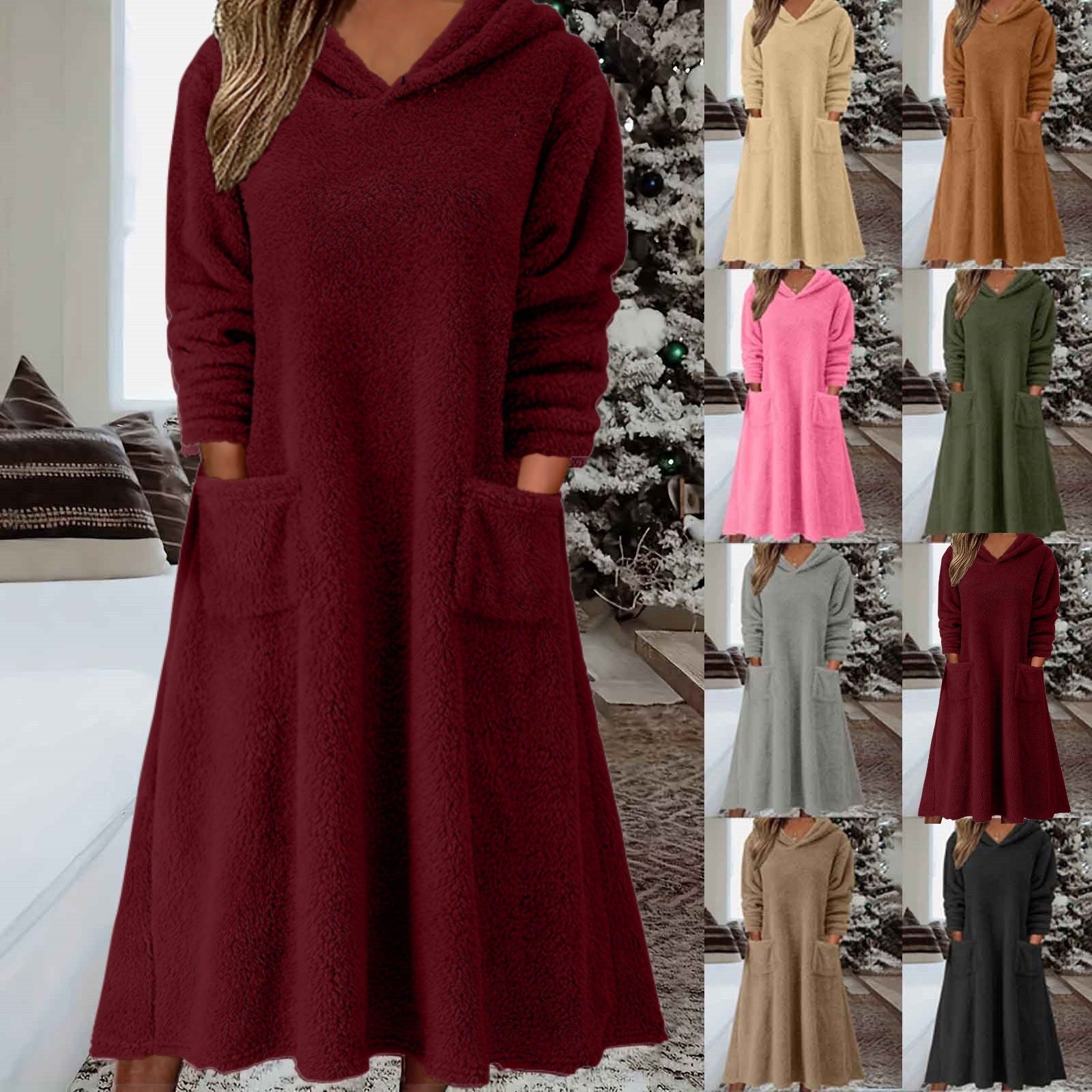 💥【50% popust】 Nova ohlapna flis obleka s kapuco in dolgimi rokavi za domačo uporabo iz leta 2025