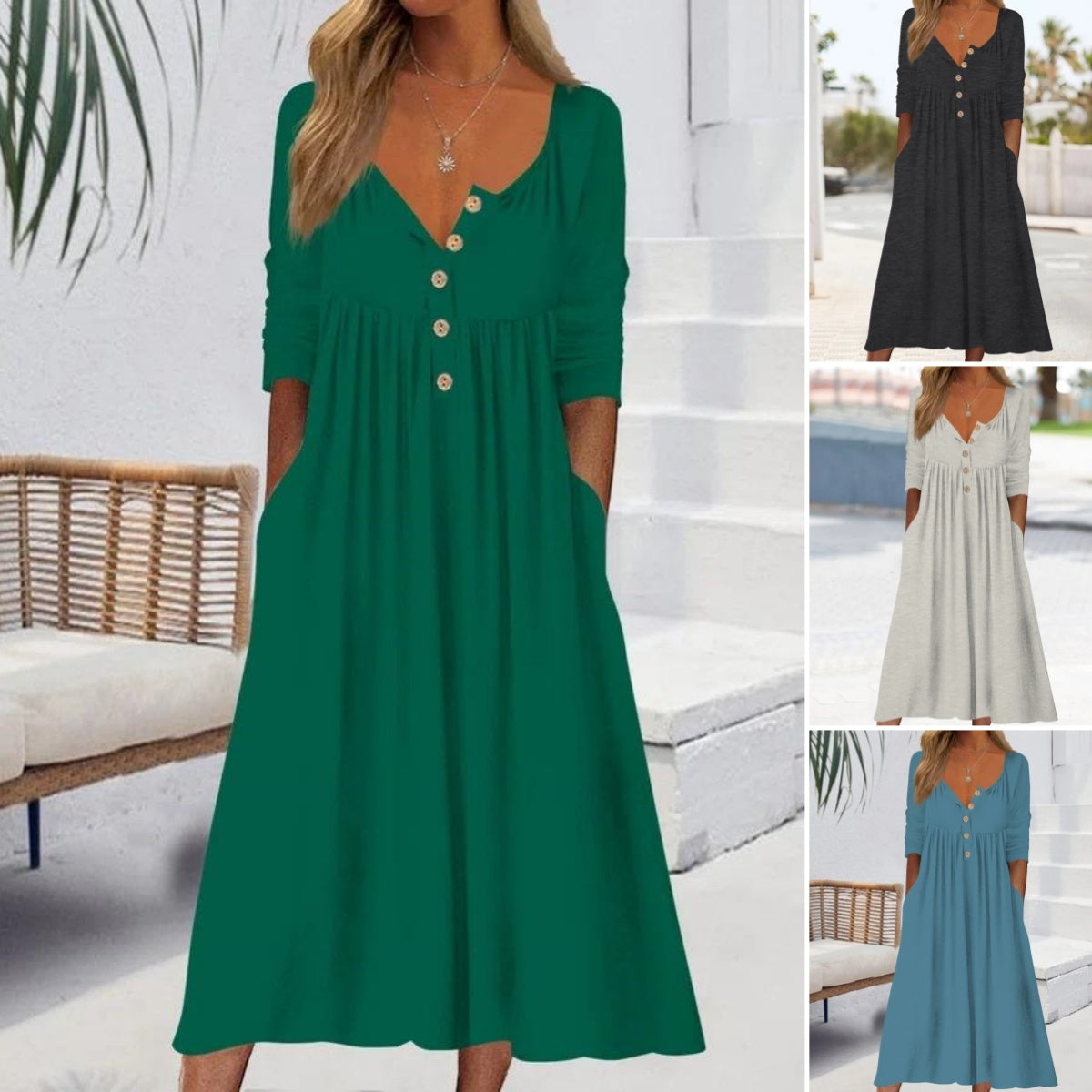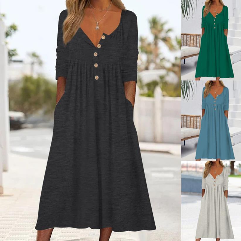 💥【S-3XL】Nova enobarvna obleka z dolgimi rokavi za prosti čas – mehka in udobna