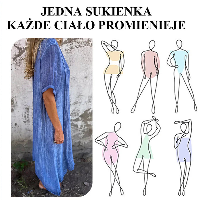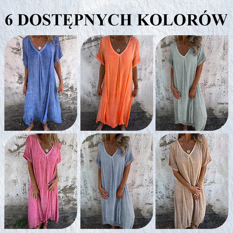 🔥【50 % popust】🥰👗【S-3XL】Nove modne obleke z V-izrezom iz bombaža in lana za leto 2025