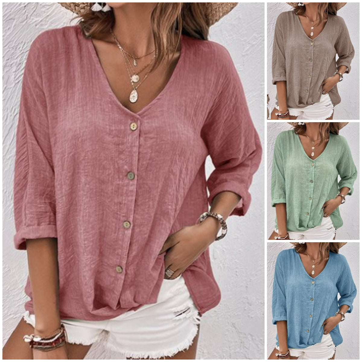 🔥【Časovno omejen 50 % popust】【S-5XL】Ženske bombažne in lanene majice z V-izrezom