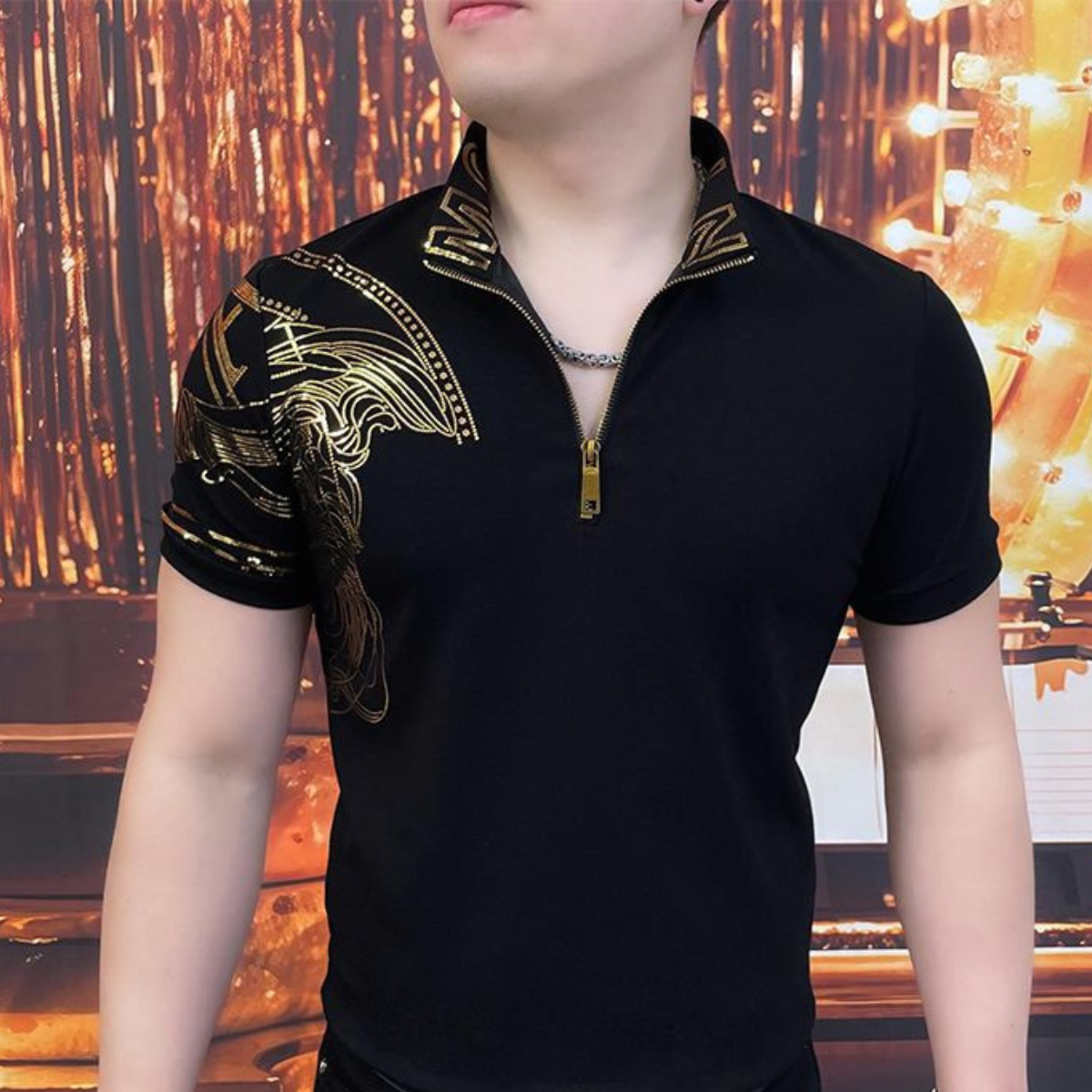š„ćOdliÄna razprodajaćMoÅ”ka elegantna polo majica z zadrgo in zarezo - klasiÄna Ärna z izvrstnim vezenjem
