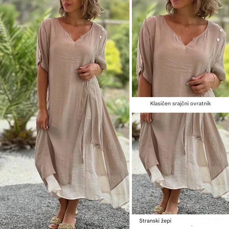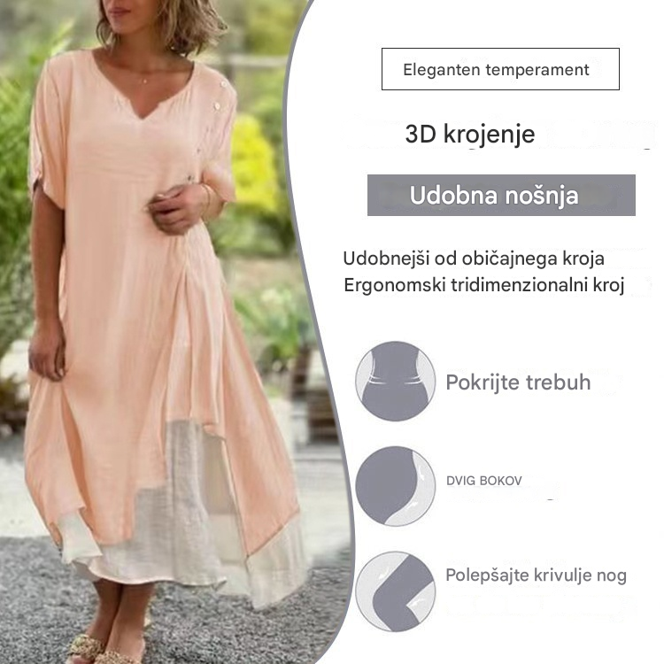 šNova spomladansko-poletna modna lažna dvodelna asimetriÄna obleka z V-izrezom in kratkimi rokavi