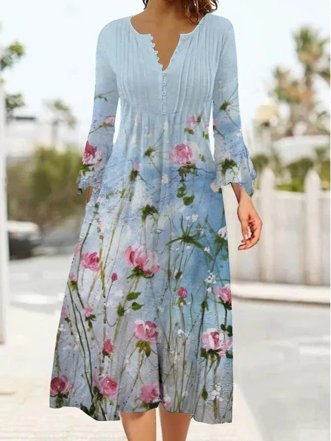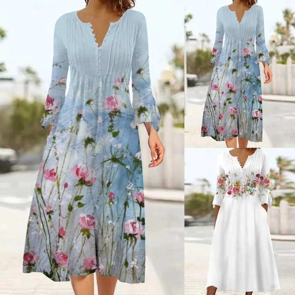 ✨✨[S-XXL] Nova priložnostna obleka z V-izrezom in cvetličnim vzorcem