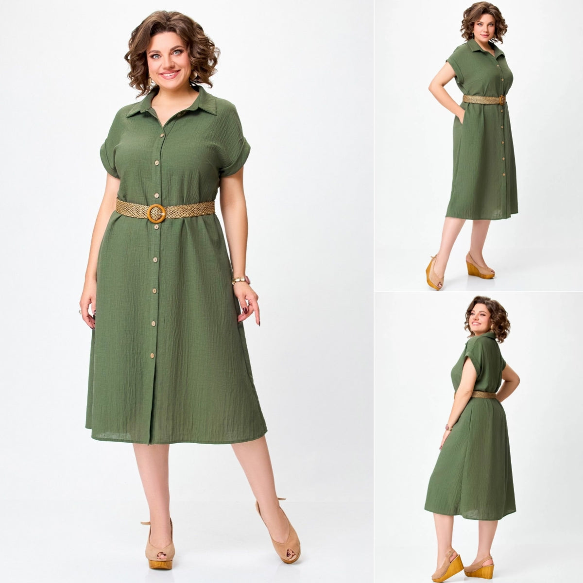 💕💕【S-5XL】2025 Udobna obleka z ovratnikom z visokim pasom
