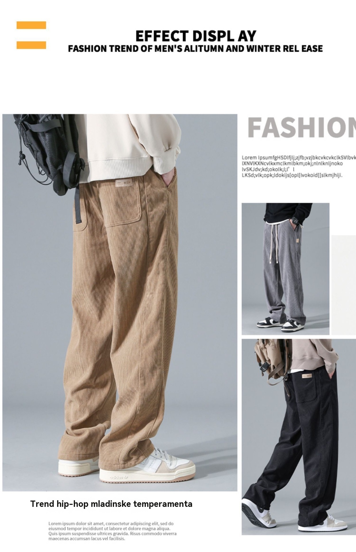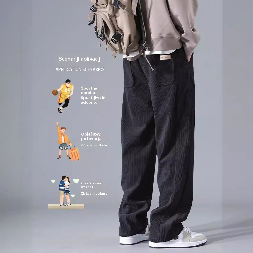 【45–115 kg】🔥 Moške ohlapne ravne trenirke iz korduroja, pomlad/jesen