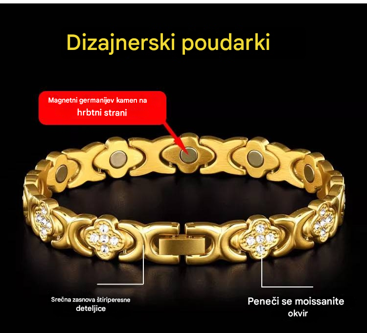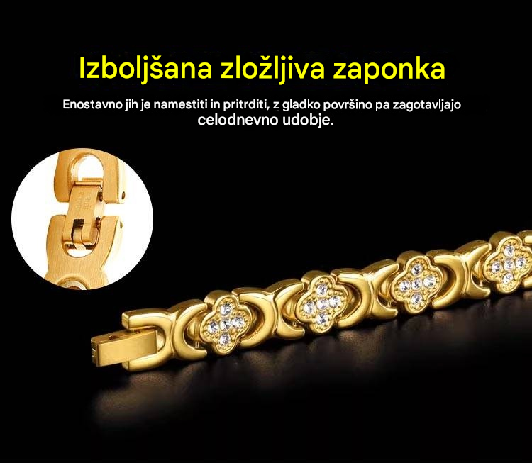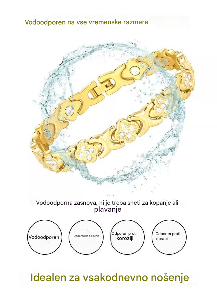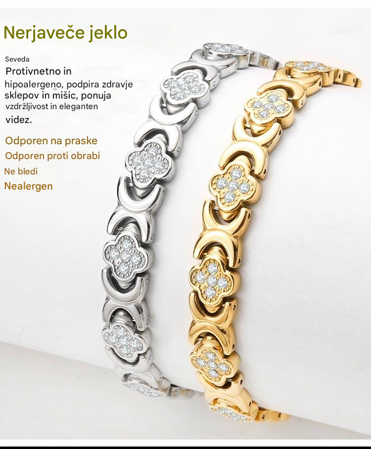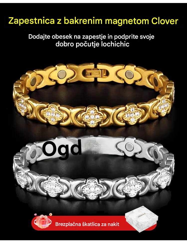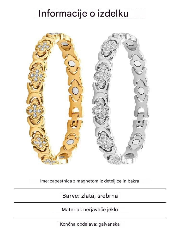Modna in razkošna magnetna zapestnica iz zlitine srečne detelje, okrašena z diamanti, v enovrstni obliki
