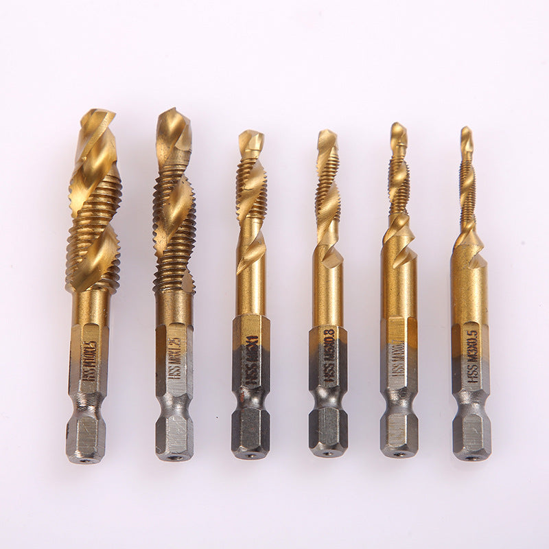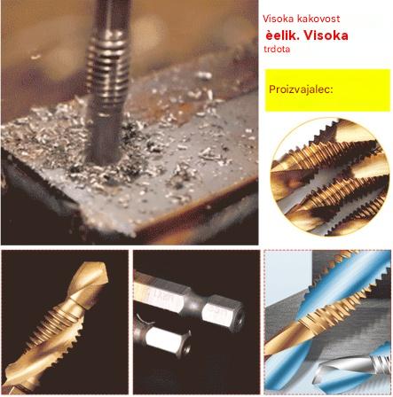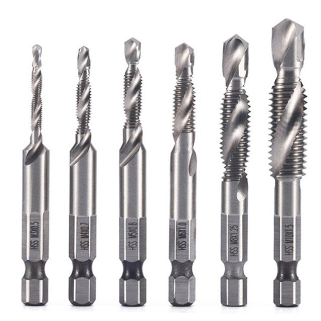 [Paket 6 kosov] Navojni sveder iz hitroreznega jekla s šesterokotnim steblom, tri v enem, kompozitni