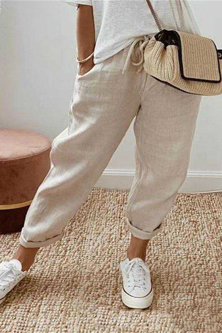 【S-5XL】Ženske ležerne hlače iz bombaža in lana, večbarvne možnosti