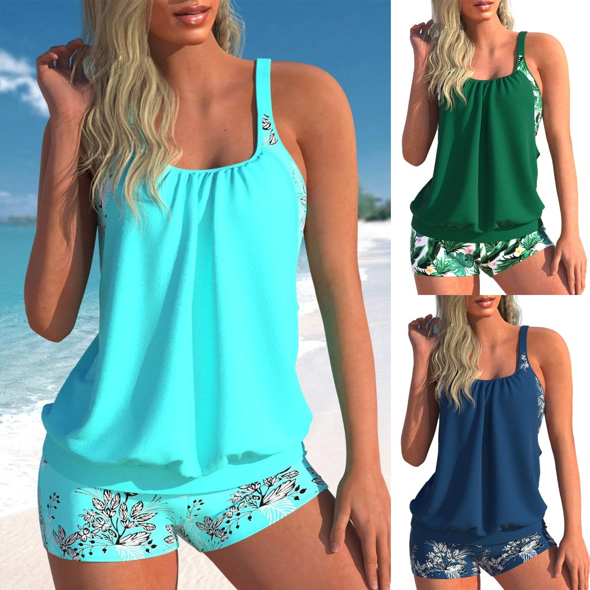 🩱✨【50% reducere】【S-5XL】Costum de baie din două piese, imprimeu, boxer pentru femei