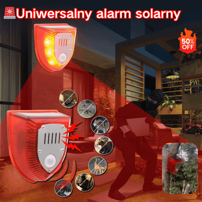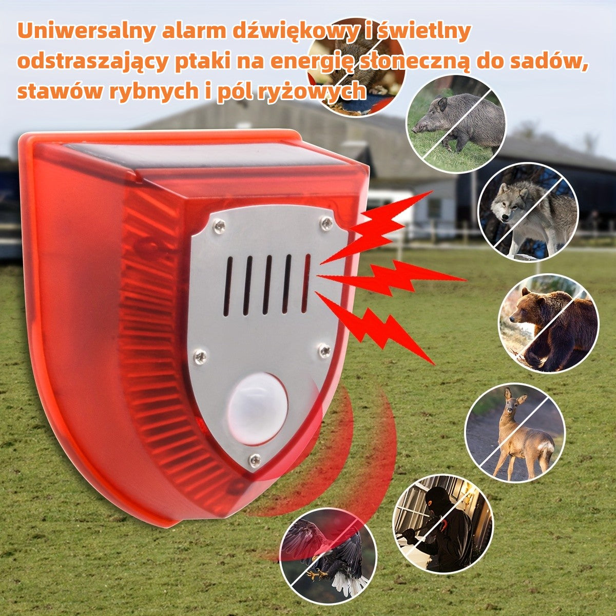 🚨【Reducere de 50%】🐦🐗Sperietoare de păsări universală cu energie solară, cu alarmă sonoră și luminoasă, potrivită pentru casă, livadă, iaz cu pești și orezării