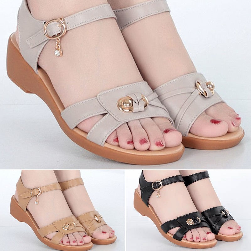 【35~40】Sandale de dama anti-alunecare cu talpă moale din piele moale cu pană de vară