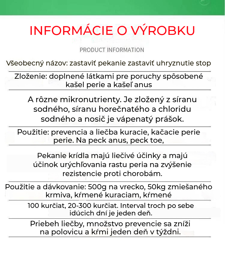 🐔Veterinárny doplnok stopových prvkov proti klovaniu, vhodný pre sliepky, kačice, husi a tie, ktoré klujú pri vetracom otvore, perie alebo vajciach.