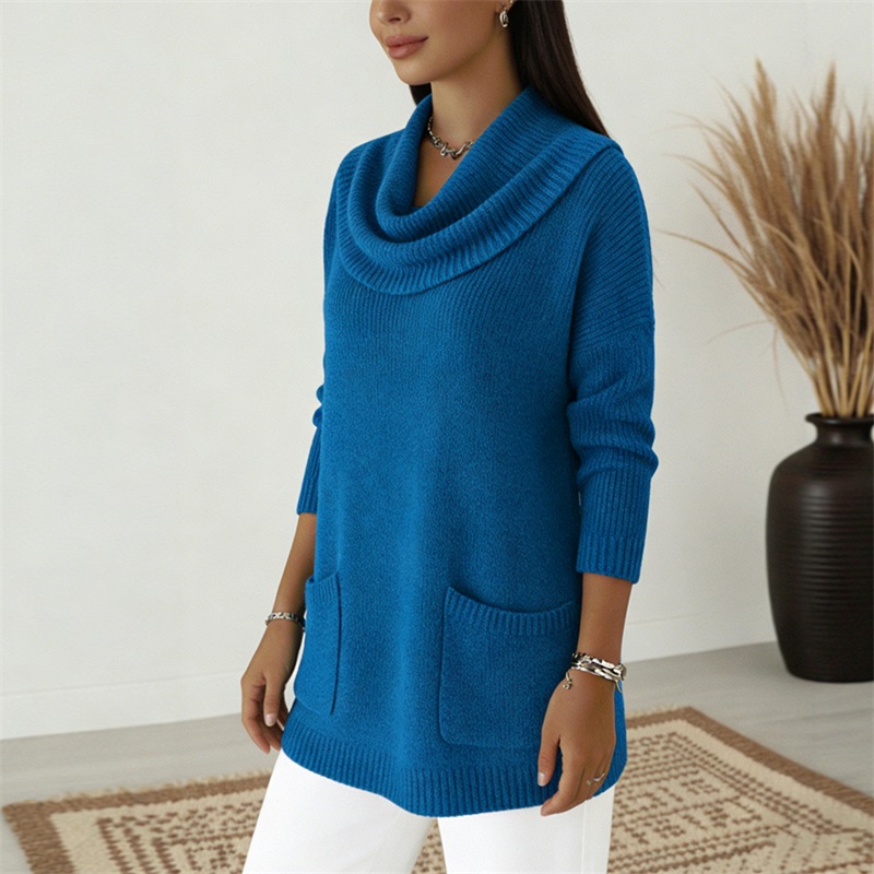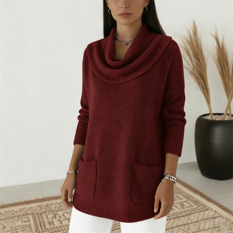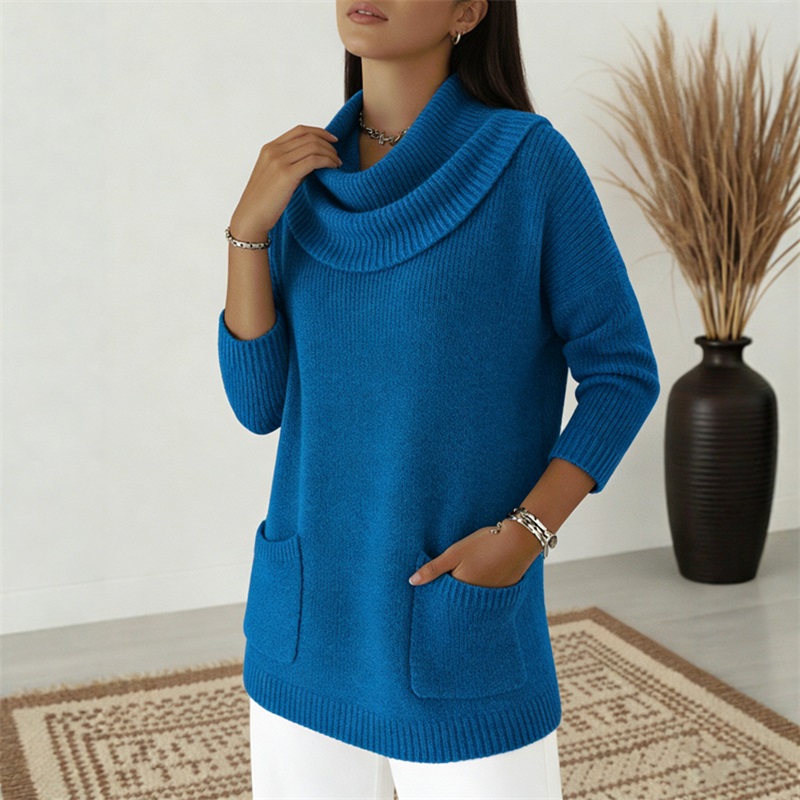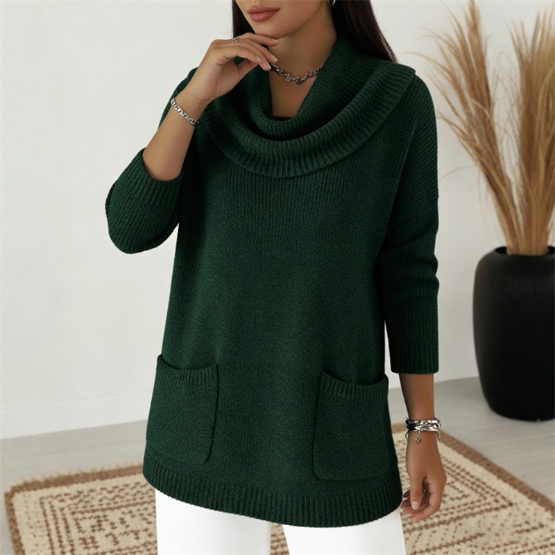 🧶🔥 Jednofarebný dámsky sveter s vreckami, ideálny na jeseň a zimu - predáva sa ako teplé rožky!
