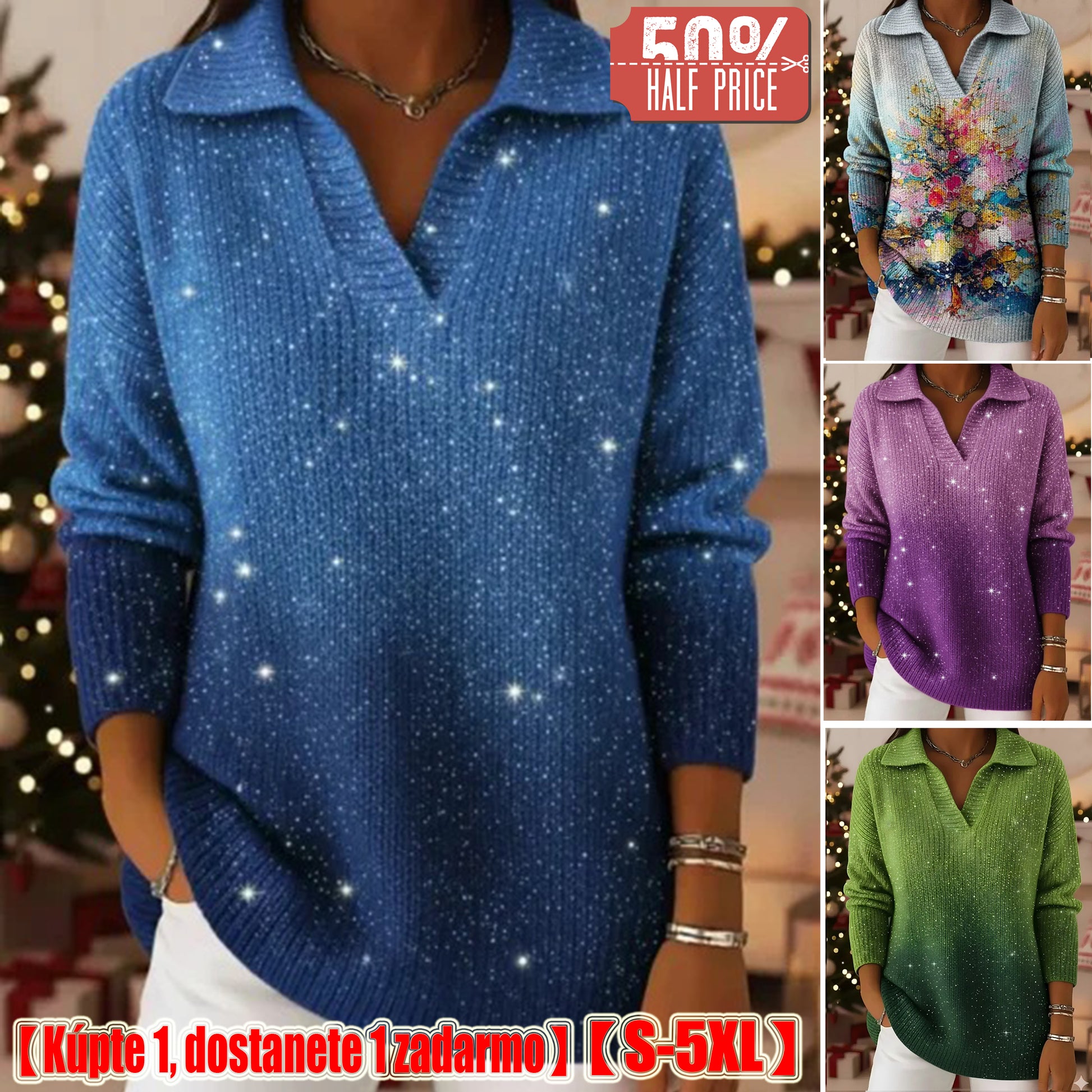 🔥50% zľava🔥【S-5XL】Pletený sveter s golierom a gradientným vzorom Dreamy Starly Sky