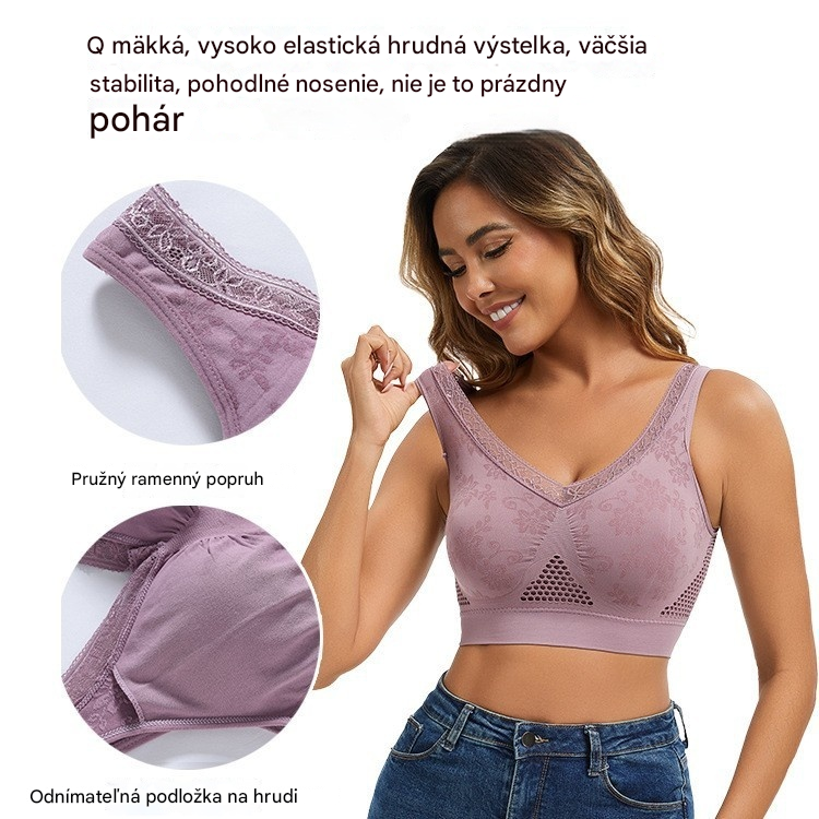 😍❤️40-120 kg【Balenie 3 kusov】✨ Bezdrôtová krajková podprsenka s vysokou podporou pre ženy